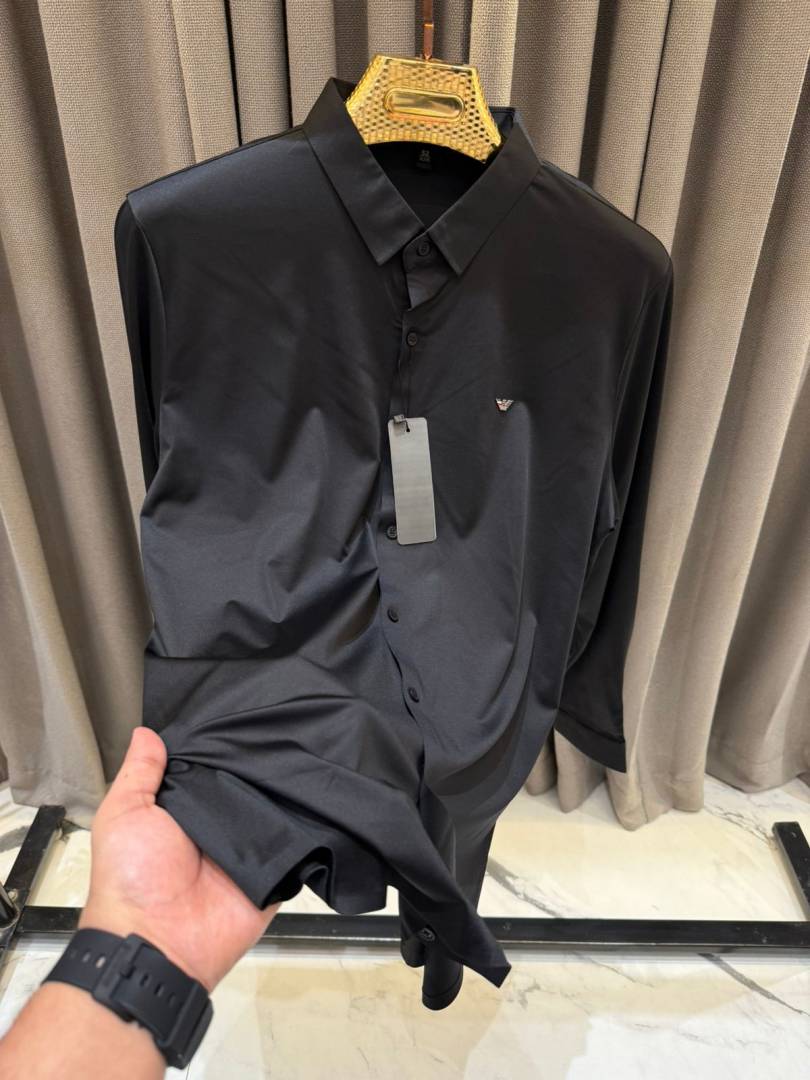 Emporio Arman_i Chest Logo Japanese Lycra Full Sleeves Stichless Shirt Black