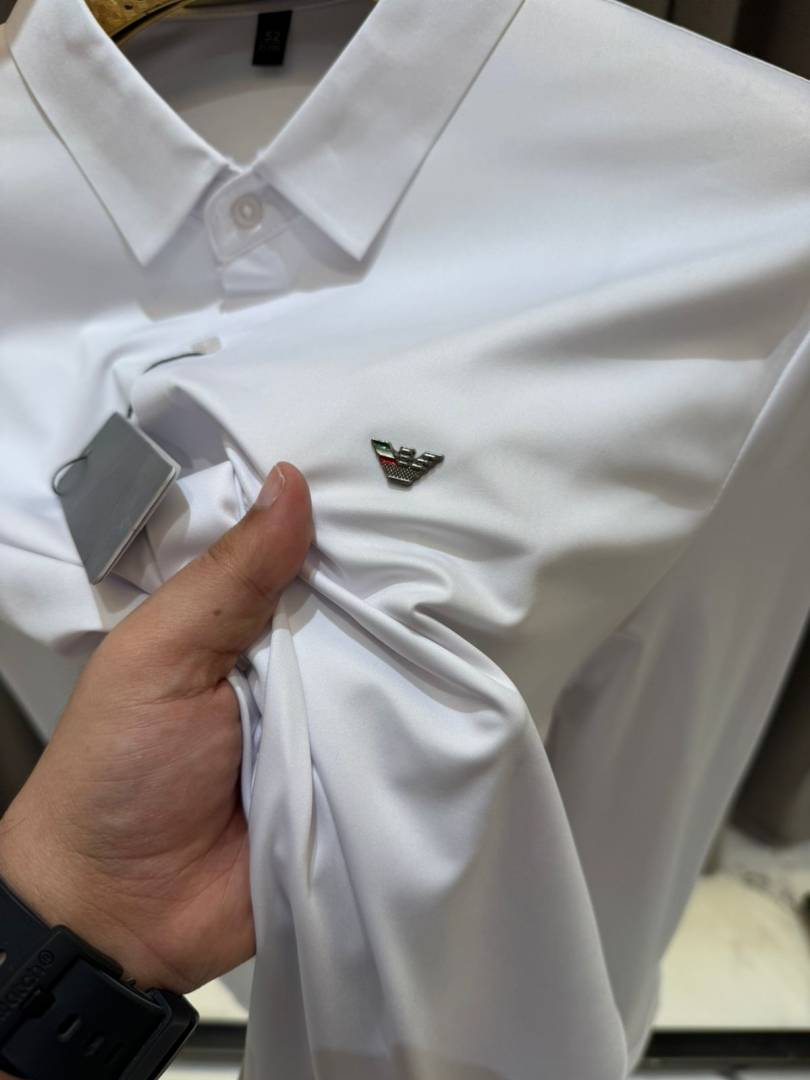 Emporio Arman_i Chest Logo Japanese Lycra Full Sleeves Stichless Shirt White