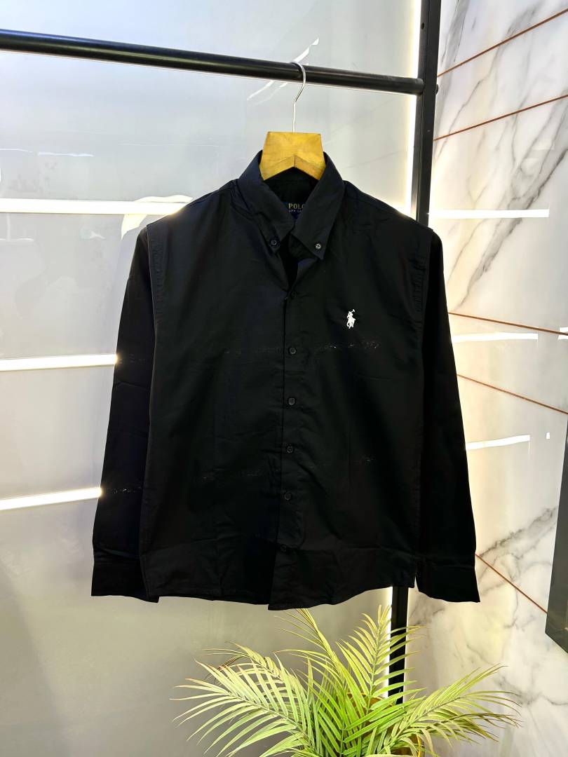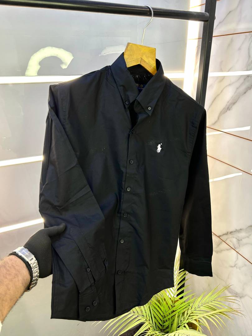 Ralph_Lauren Polo Black Oxford Lycra Embroidery Logo Premium Shirt F2841-BL