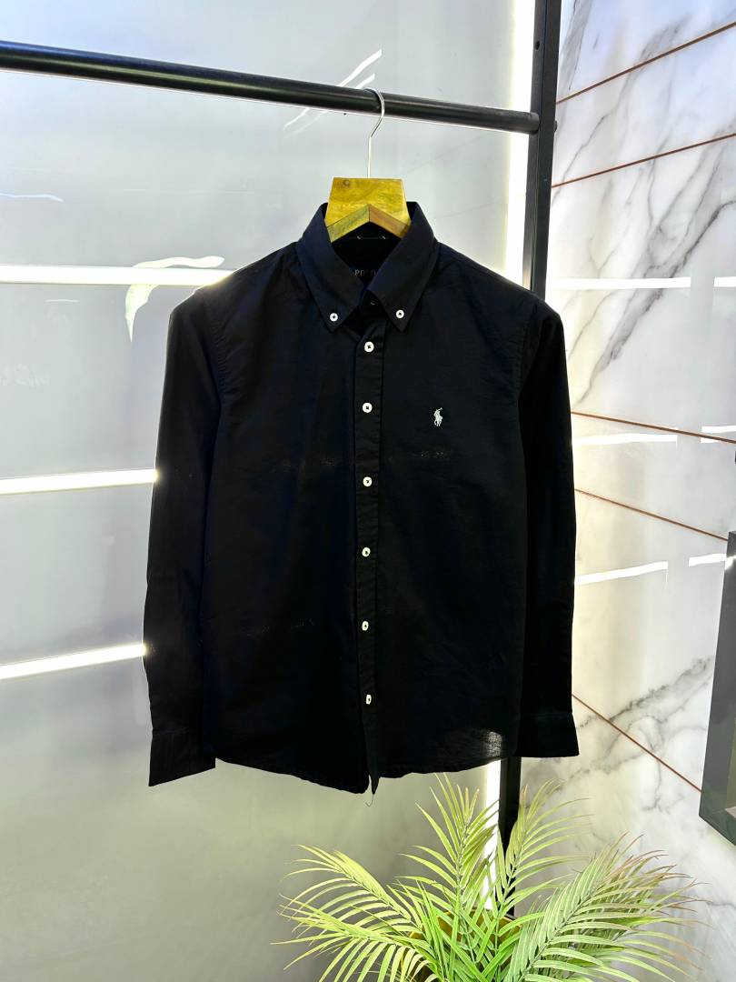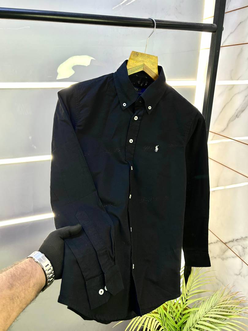 Ralph_Lauren Polo Black Oxford Lycra Embroidery Logo Premium Shirt F2841-BL