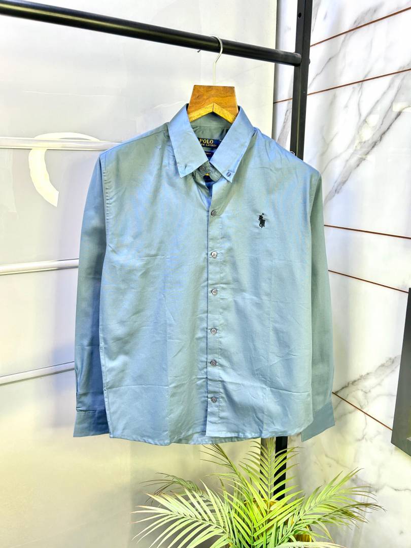 Ralph_Lauren Blue Oxford Lycra Embroidery Logo Premium Shirt F2757-BU