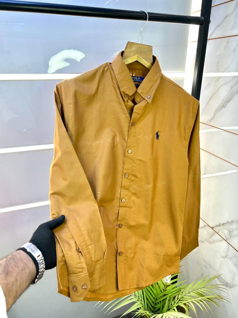 Ralph_Lauren Mustard Oxford Lycra Embroidery Logo Premium Shirt F2757-MU