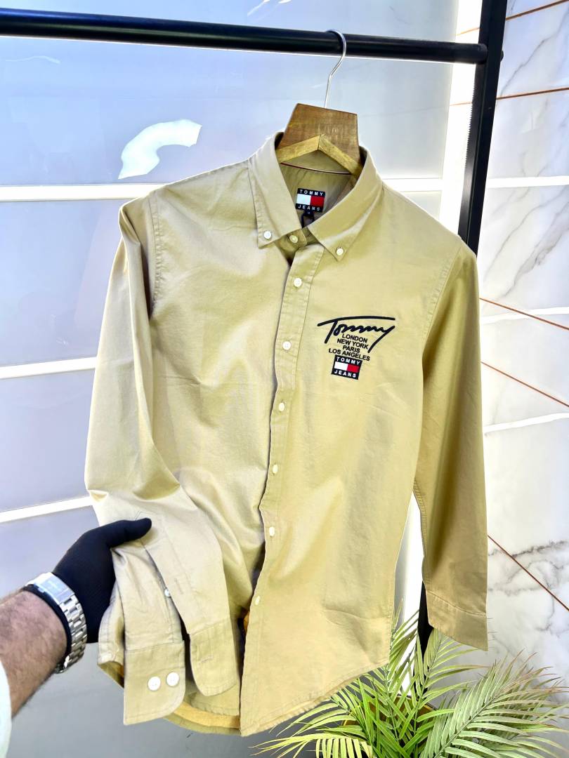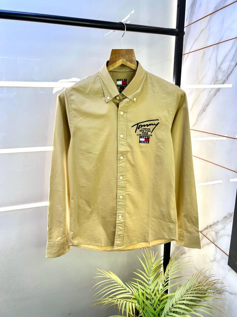 Tommy_Hilfiger Brown Embroidery Logo Oxford Lycra Premium Shirts F2747-BR