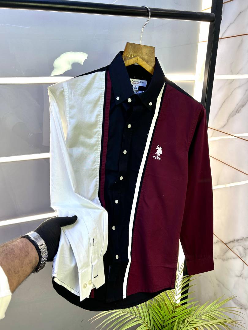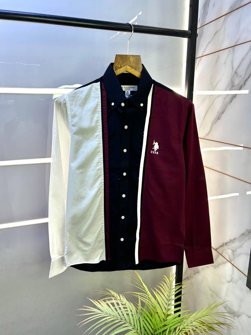 Us Polo Black Embroidery Logo Oxford Lycra Premium Shirt F2766-BL