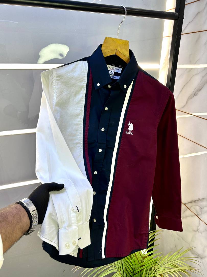 Us Polo Navy Embroidery Logo Oxford Lycra Premium Shirt F2766-NY